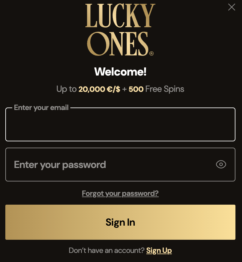 Sign-in Steps of Lucky Ones Casino